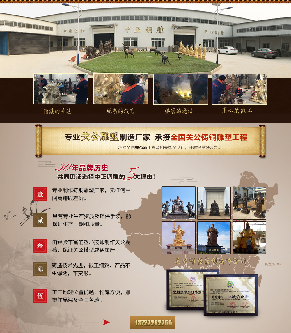 河北中正鑄銅工藝品制造有限公司是一家專業(yè)制作鑄銅動物雕塑的生產(chǎn)廠家。擁有完善、大型、先進(jìn)的鑄造生產(chǎn)設(shè)備,并由數(shù)位經(jīng)驗豐富的高級鑄造技師指導(dǎo)生產(chǎn)及制作。我們公司主要鑄造動物銅雕、銅獅子、銅麒麟、銅牛、銅馬、銅鹿、銅大象等,可按客戶提供動物銅雕圖片訂做、加工動物銅雕,動物銅雕塑,我們的產(chǎn)品做工精美,造型生動,用銅扎實,質(zhì)量有保證。